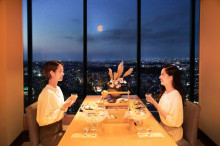 地上約130メートル・40階にある同店は、天気が良い日には月と夜景が楽しめる。10月6日の中秋の名月に合わせ、月見をテーマに会席料理を用意した。