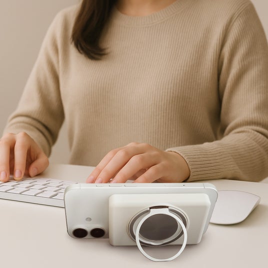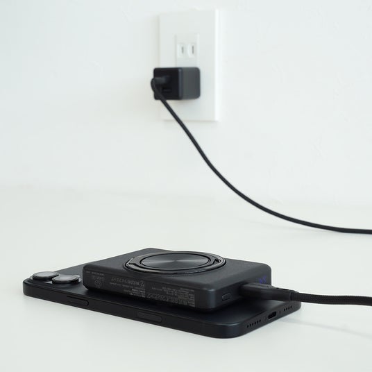 ワイヤレス充電対応の準固体モバイルバッテリー安全性に優れる「準固体電池」を採用した、ワイヤレス充電対応モバイルバッテリーです。スマホリング一体型で、充電中も安定した状態でお使いいただけます。