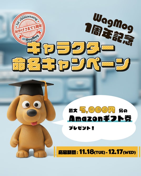 WagMog公式キャラクターの名前を募集し、採用者1名様に加えて、参加者の中から抽選で5名様にAmazonギフト券をプレゼントします。