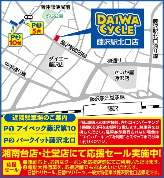 店 舗 情 報:https://www.daiwa-cycle.co.jp/shop/fujisawaekikitaguchi