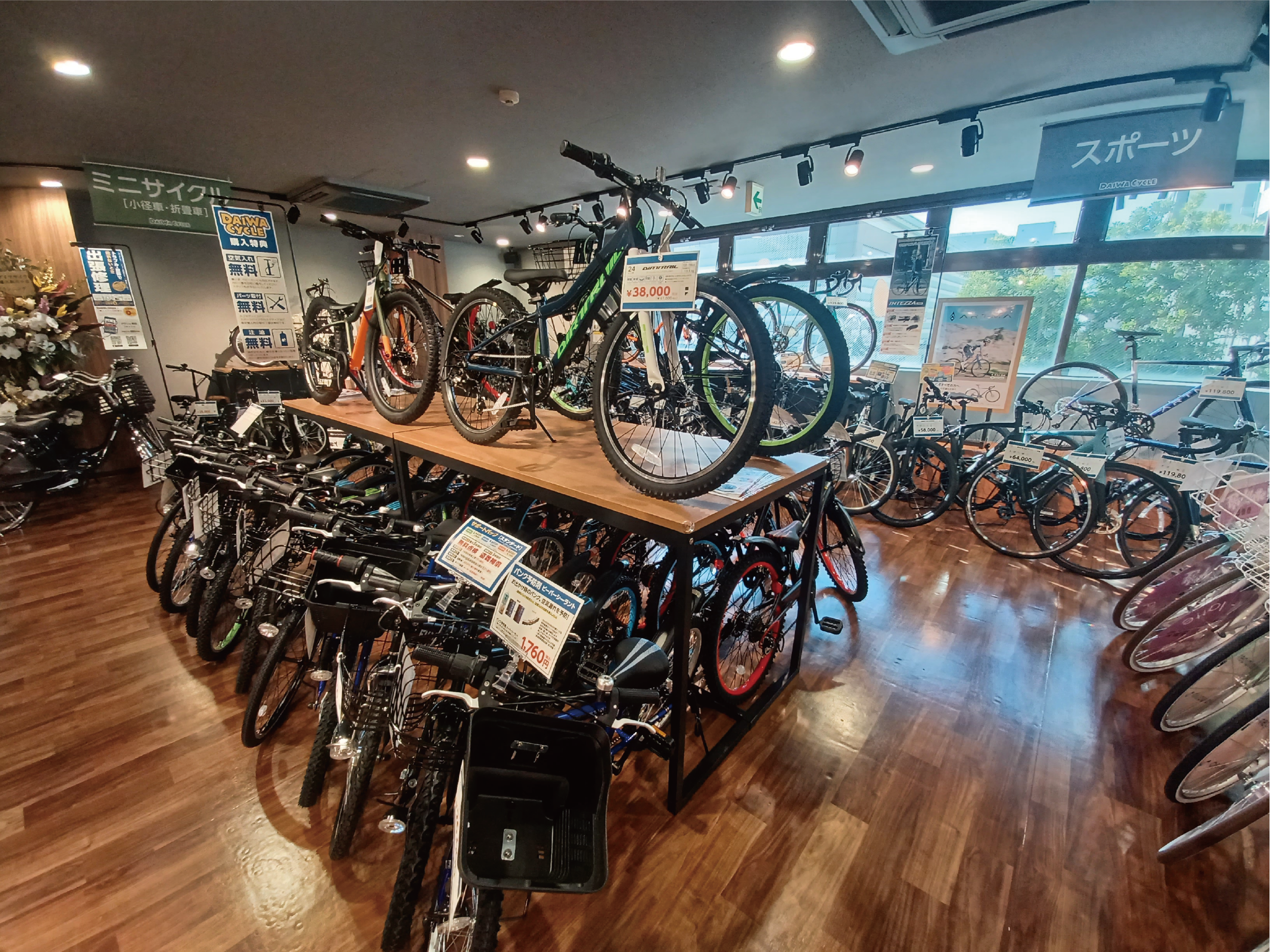 自転車の購入だけでなく、空気入れや点検などのメンテナンスから修理、不要な自転車の処分など、自転車にまつわるサービスを幅広く提供しております。