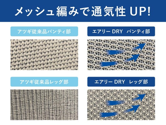 発売日:新商品「エアリーDRYで美しく。」はアツギオンラインショップでは3月30日発売。店頭では3月下旬より順次展開中。