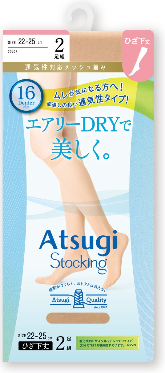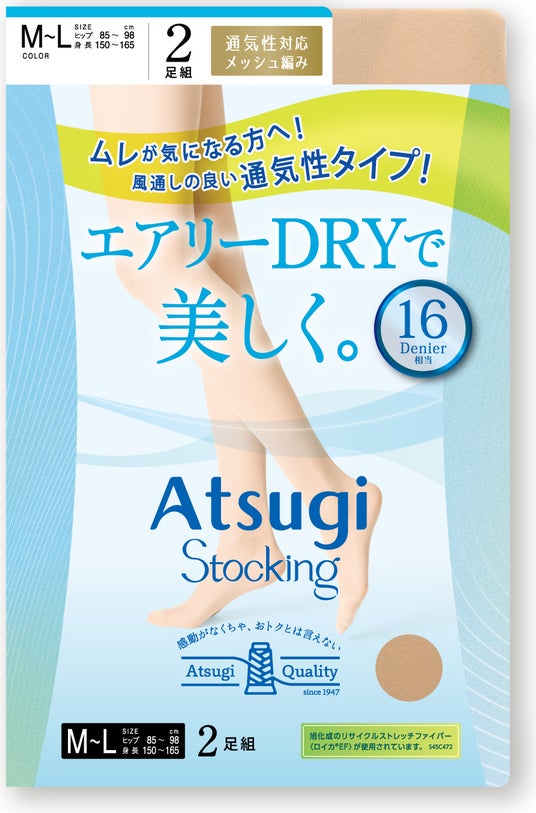 アツギ株式会社(本社:神奈川県海老名市、代表取締役社長:日光信二)は、多足組レッグウェアブランド「Atsugi Stocking(アツギストッキング)」の2026年春夏シーズン新商品として、「エアリーDRYで美しく。」を発売いたします。「エアリーDRYで美しく。」はムレ対策に特化したストッキングで、パンティ部とレッグ部にメッシュ編みを採用。暑い夏でもストッキングが必要なシーンに、ムレが気になりにくく快適なはき心地をリーズナブルな価格で提供します。
