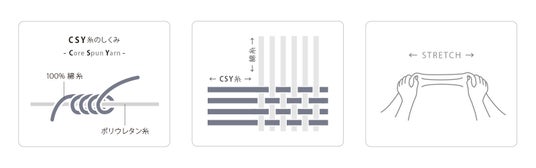 開発の鍵となったのは、「CSY(コアスパンヤーン)」と呼ばれる特殊な糸です。