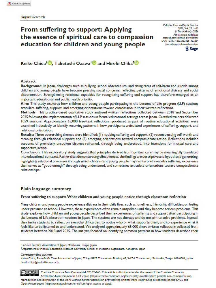 本研究成果は、国際誌 Palliative Care and Social Practice(SAGE) に掲載されました。